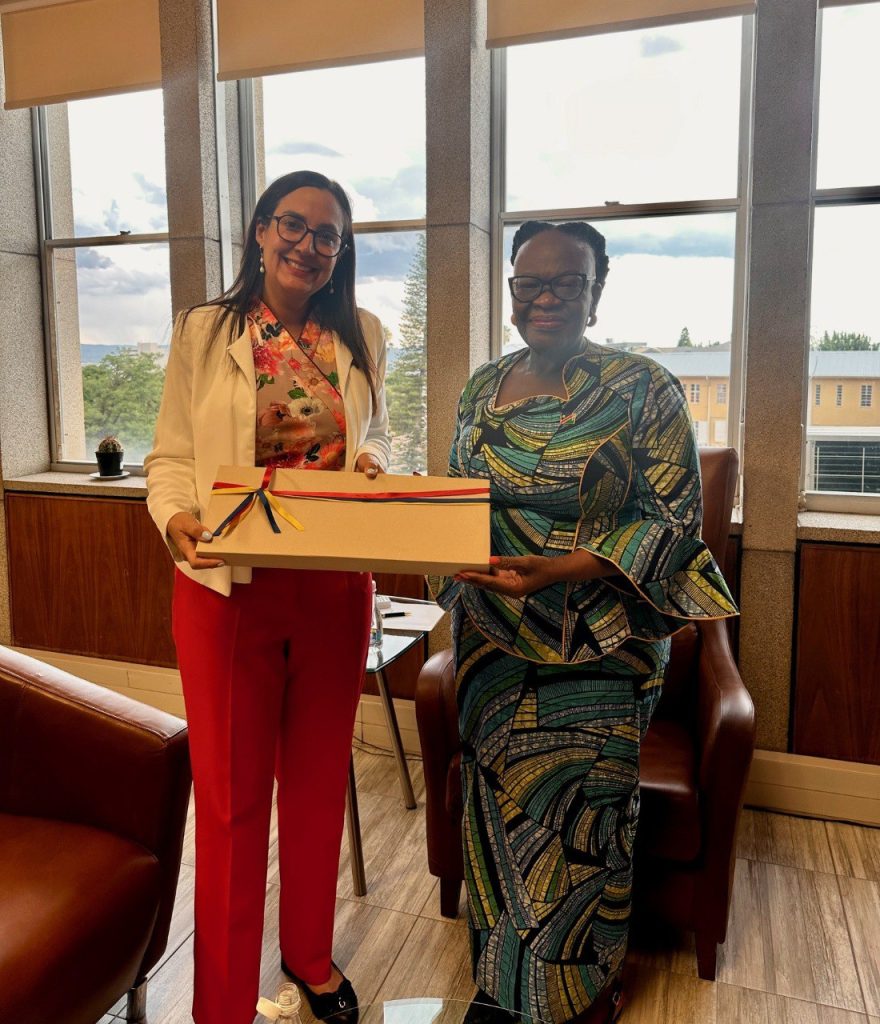 Durante la reunión, la jefa de Misión transmitió un fraternal saludo en nombre del Gobierno venezolano y agradeció la firme y soberana postura de Namibia en defensa del Derecho Internacional y del principio de no injerencia, destacando las declaraciones de la canciller Ashipala-Musavyi en apoyo a Venezuela durante su reciente visita a Rusia.